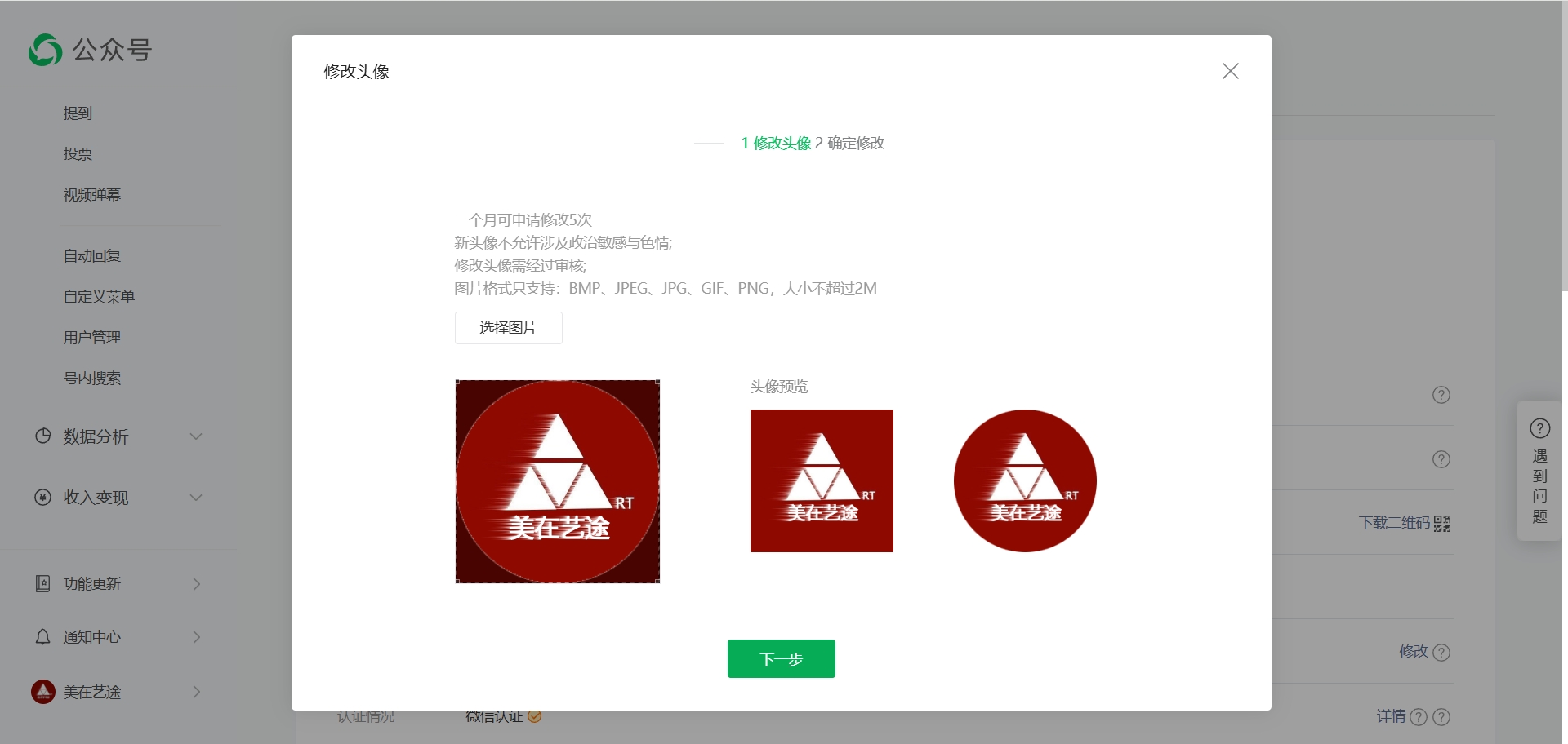公众号修改头像页面设计